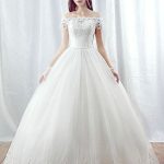 A-Line Chapel Wedding Dress with Keyhole Back and Long SleevesLace