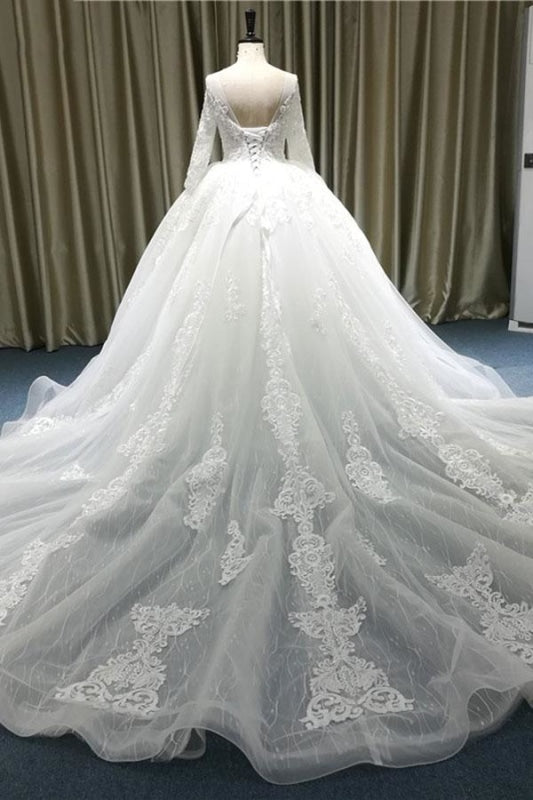 Appliques Long Sleeve Tulle Wedding Dress Vintage Style