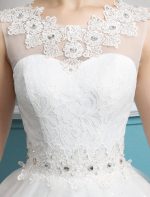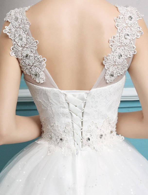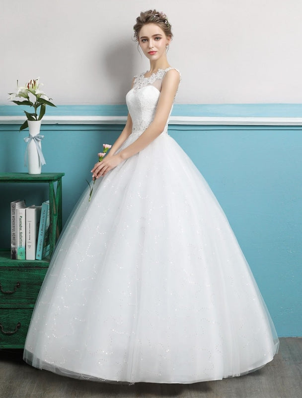 Ball Gown Wedding Dresses with Tulle Backless Ivory Beading and Floor Length Bridal Dress