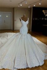 Beading Lace Straps Applique Wedding Dresses with Shiny Mermaid Style