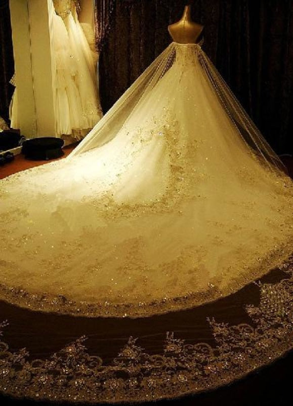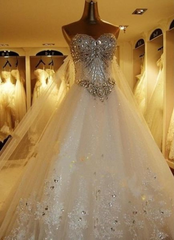 Beautiful Lace Applique Strapless Sweetheart Neckline Beaded Wedding Gown