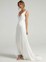 Beautiful White V-Neck Backless Chiffon A-Line Wedding Dress