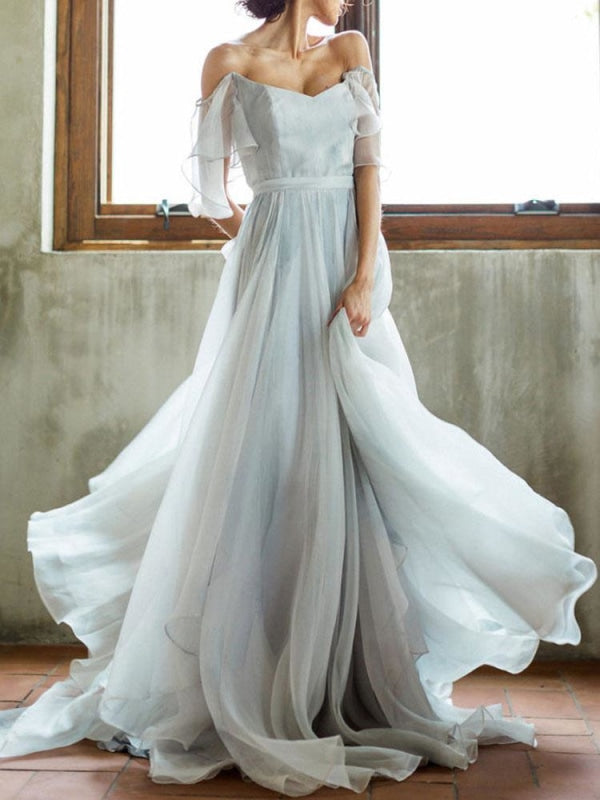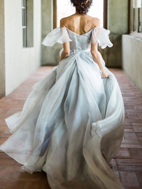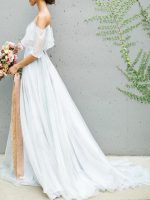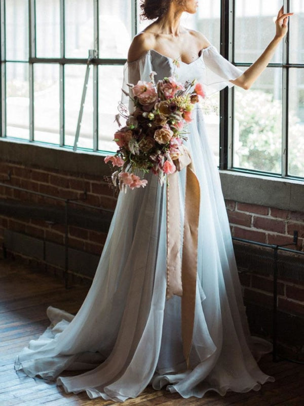 Boho A-Line Off-The-Shoulder Sleeveless Pleated Court Train Chiffon Bridal Gown