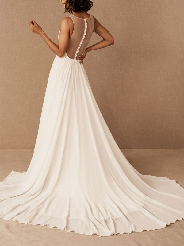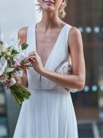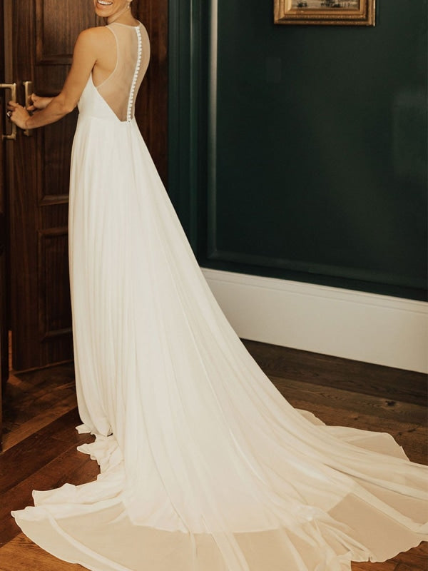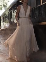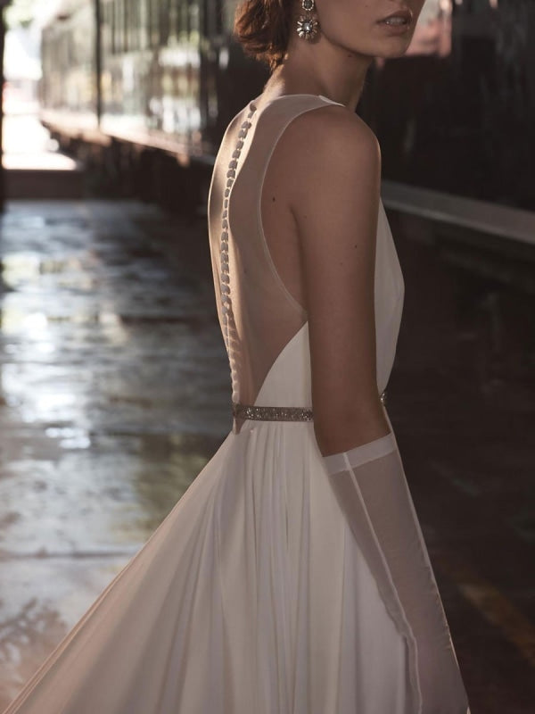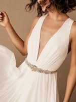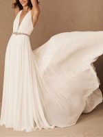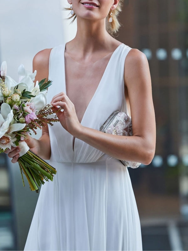 Chic Deep V-Neck Beaded Sash Chiffon Bridal Dress