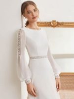 Be the first to review “Chiffon Halter Bridal Dresses with Long Sleeves Lace Details and A-Line Silhouette with Train”