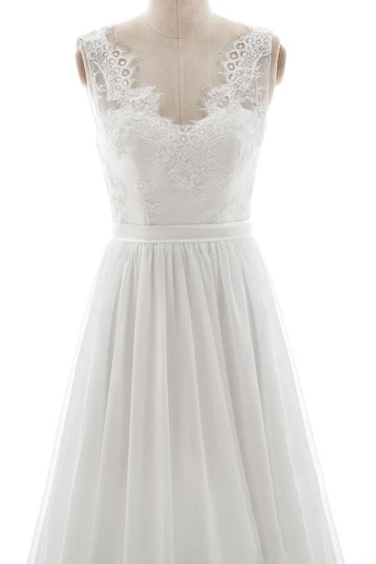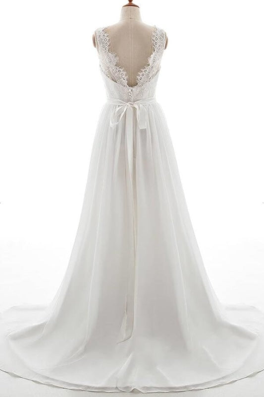 Classic V-neck Lace Chiffon A-line Wedding Dress
