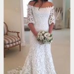 Classic White Lace Sheath Wedding Dress with Off-The-Shoulder Sleeves