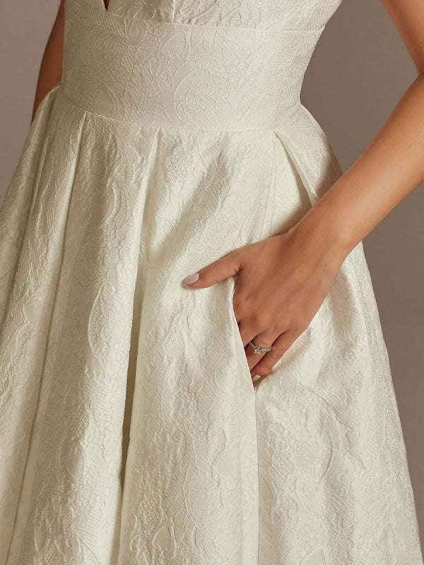 Be the first to review “Classic White Lace V-Neck Backless Ruffled A-Line Bridal Gown with Short Sleeves”
