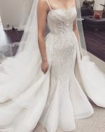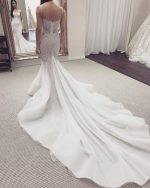 Classic White Mermaid Wedding Dress with Illusion Neckline and Sleeveless Design