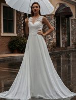 Be the first to review “Classic White Queen Anne Backless Lace Mermaid Wedding Gown”