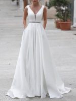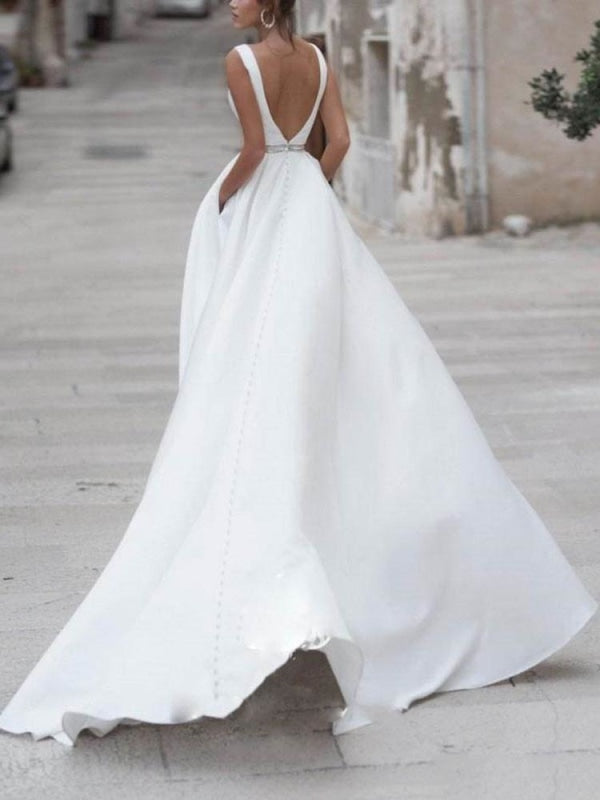 Elegant A-Line V-Neck Bridal Gowns with Sleeveless Design and Train