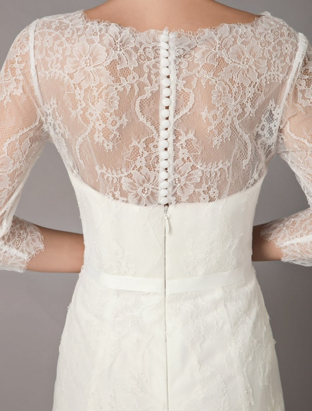 Embellishment Bows Back Details Wedding Dress Functional Buttons
