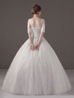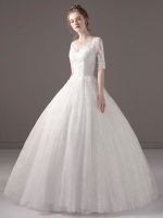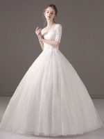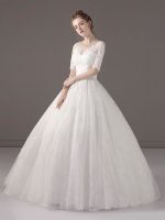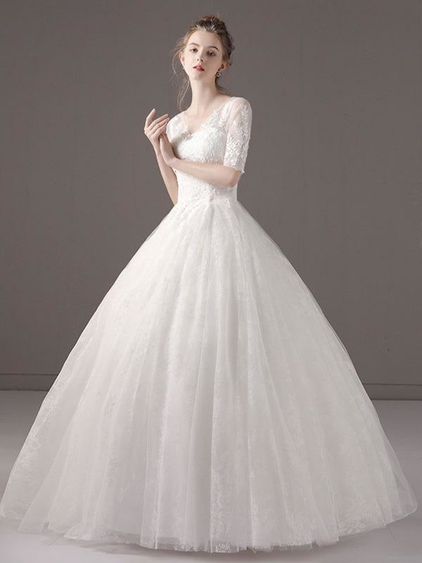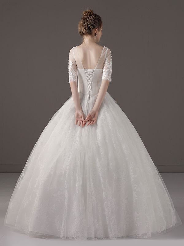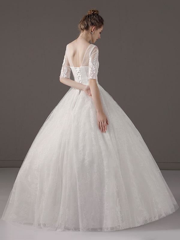 Elegant Princess Ball Gown Ivory Lace Beaded Bridal Dress with Half Sleeves