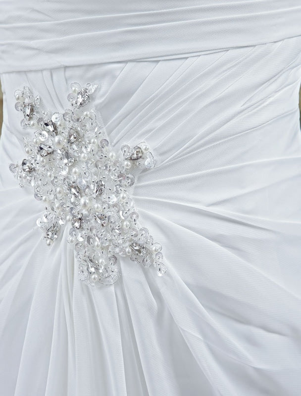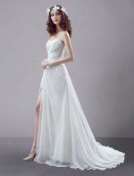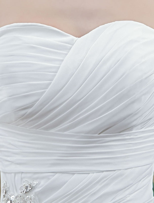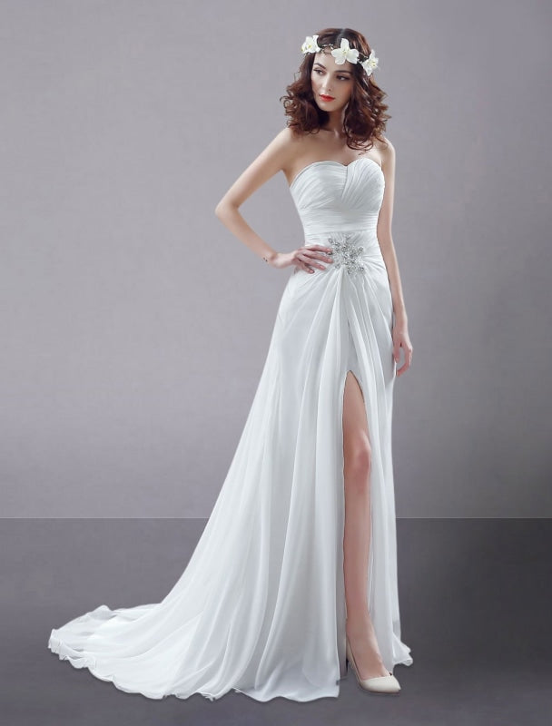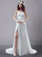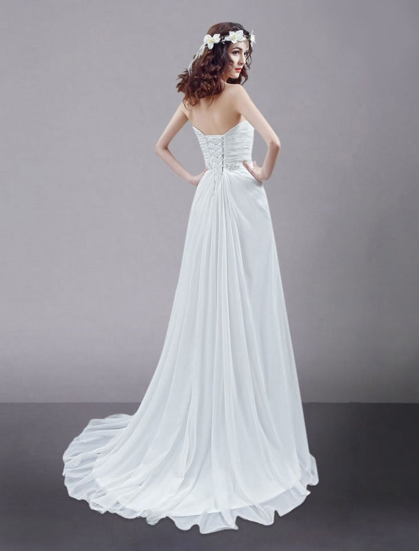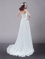 Elegant White Backless Long Bridal Dress with Train V-Neck Sleeveless and Natural Waist