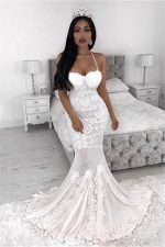 Elegant White Lace Appliques Spaghetti Strap Wedding Dress