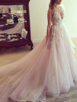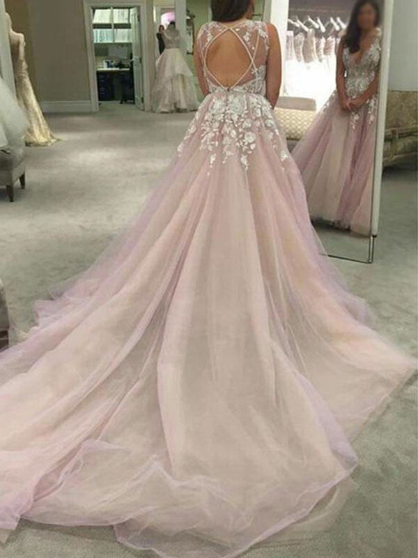 Enchanting Deep V-Neck Sleeveless Lace Flora Tulle Bridal Gown