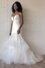 Enchanting White Sheer Lace Appliques Mermaid Wedding Dress with Sweetheart Neckline