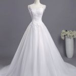 Exquisite A-Line Tulle Wedding Dress with Beading V-Neck and Sleeveless Design
