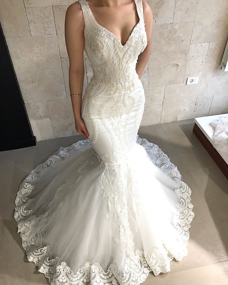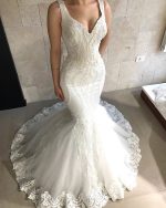Fit and Flare Beaded Appliques Wedding Dresses with Sleeveless Tulle Lace Bridal Gowns Straps