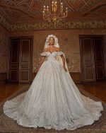 Be the first to review “Floral Lace A-line Ball Gown Wedding Dress with Off-the-Shoulder Style”