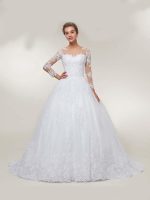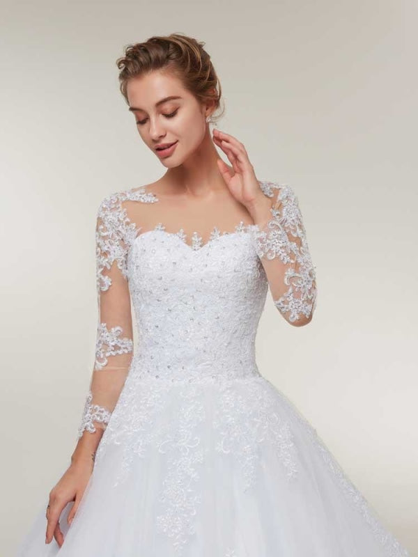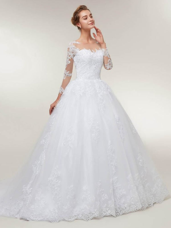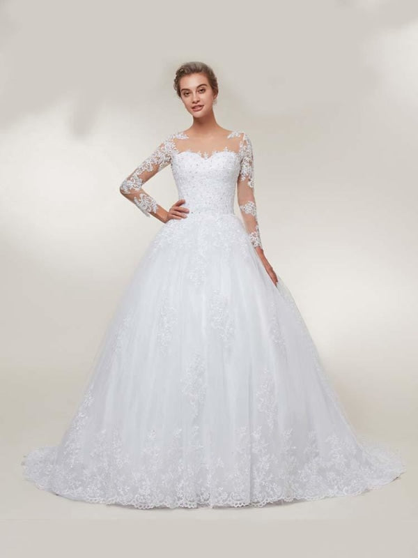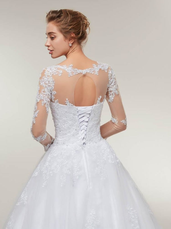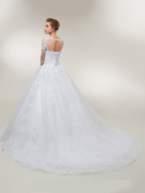 Graceful Lace-Up Ball Gown Wedding Dresses with Glamorous Long Sleeves