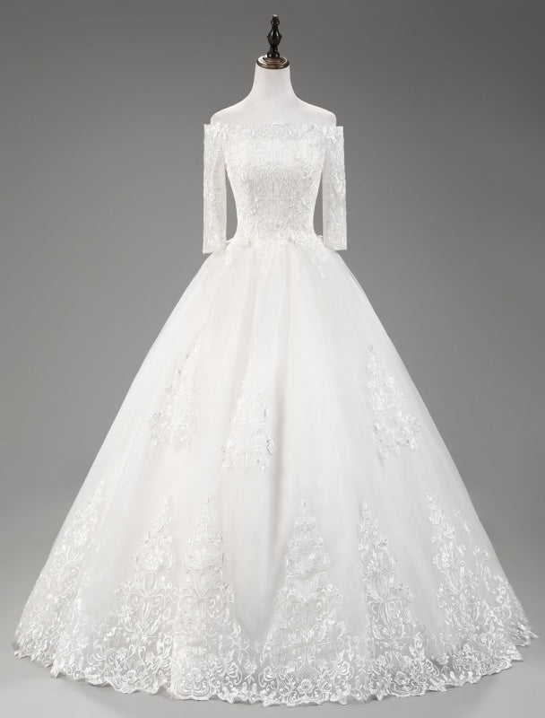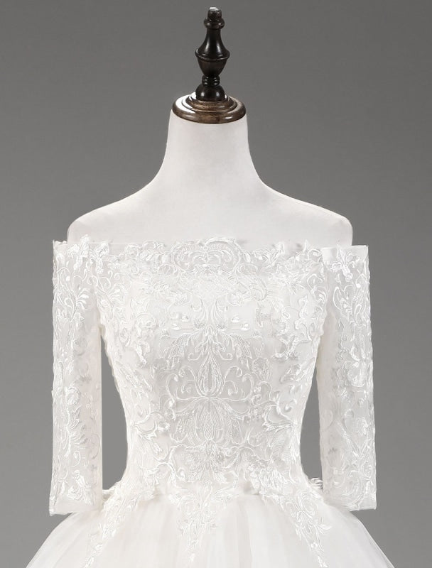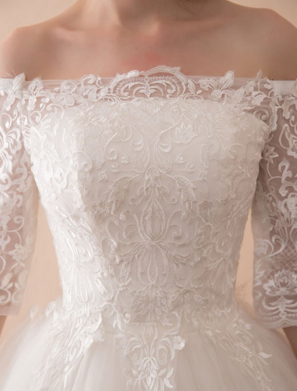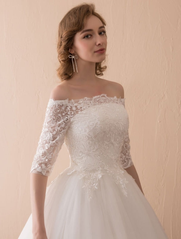 Graceful Princess Lace Off The Shoulder Half Sleeve Bridal Gown