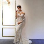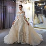 High Neck Mermaid Lace Ivory Wedding Dress with Overskirt Trendy