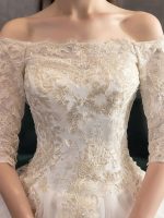 Be the first to review “Ivory Lace Applique Half Sleeve Off The Shoulder Princess Bridal Gown with Train”