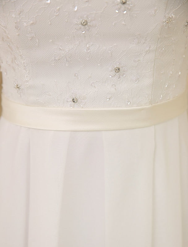 Ivory Lace Chiffon Beach Wedding Dress with Beaded Details