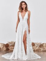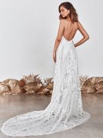 Be the first to review “Ivory V-Neck Backless Sleeveless Lace Bridal Gown with Train”