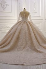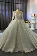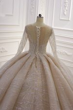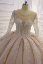 Jewel Long Sleeves Ruffled Ball Gown Wedding Dress with Shiny Tulle