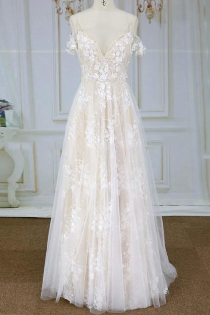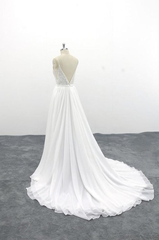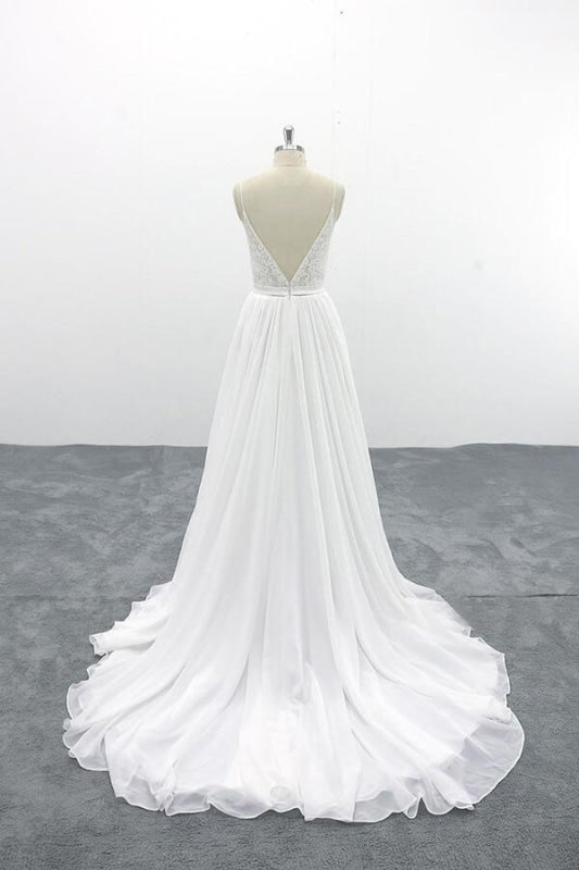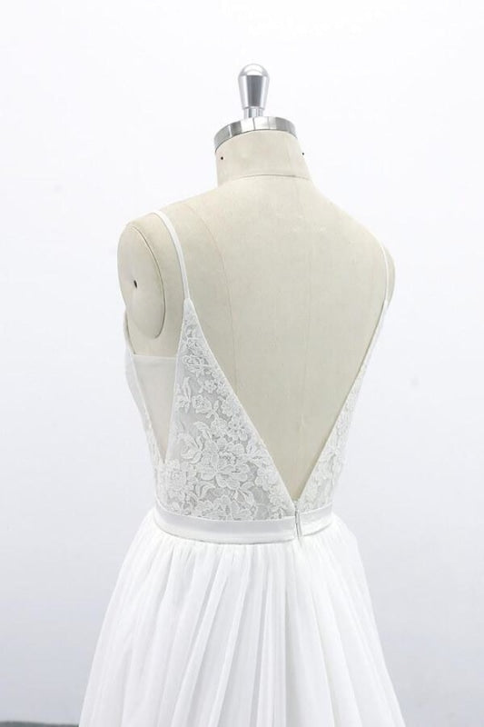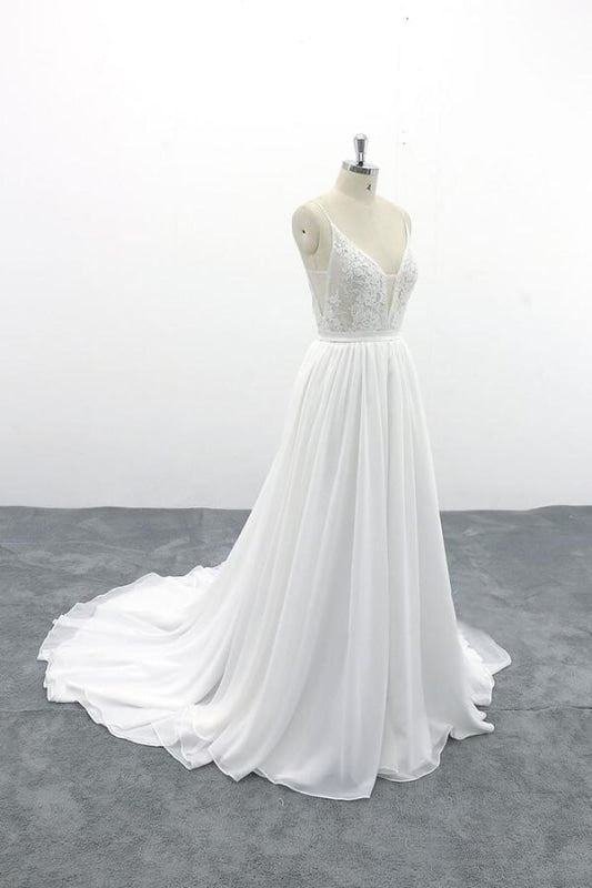 Lace Chiffon A-Line Wedding Dress with Spaghetti Straps