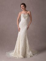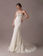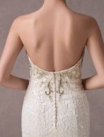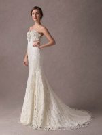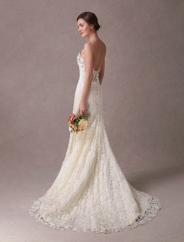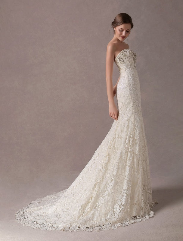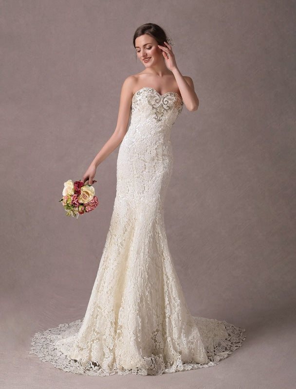 Lace Strapless Ivory Sweetheart Beaded Bridal Dress with Train Exclusive Mermaid Wedding Dresses