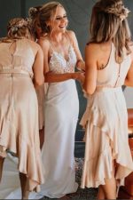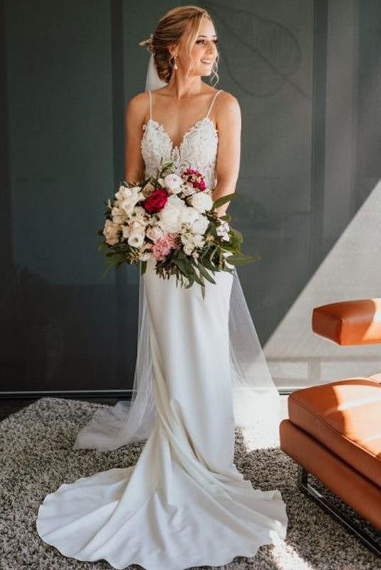 Lace Top Spaghetti Strap Backless Long Cheap Wedding Dress Vintage Chic