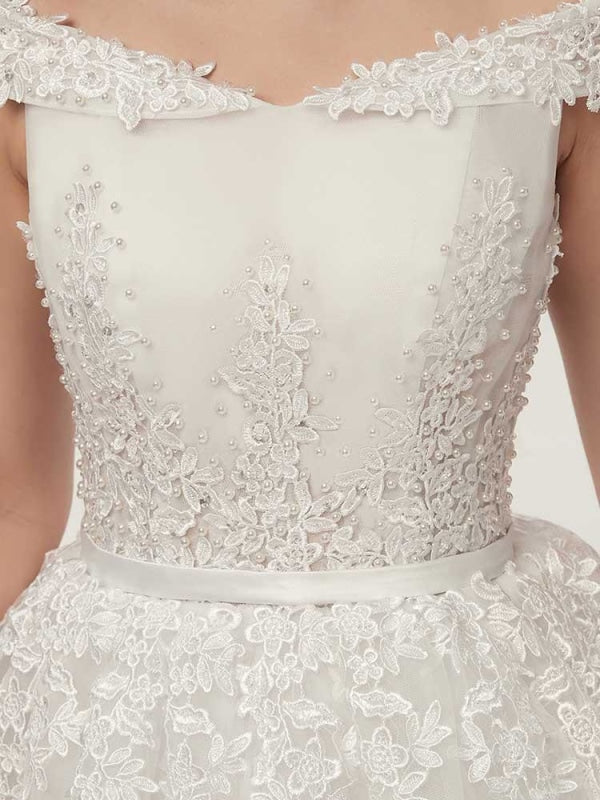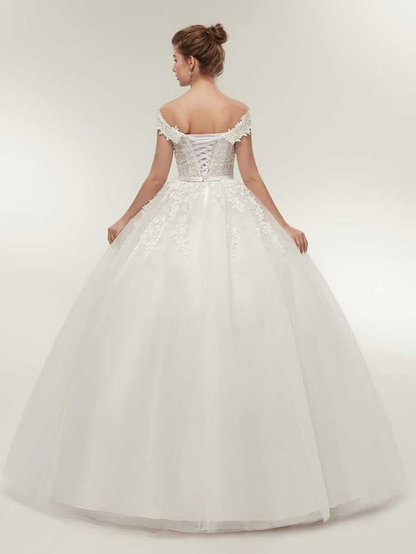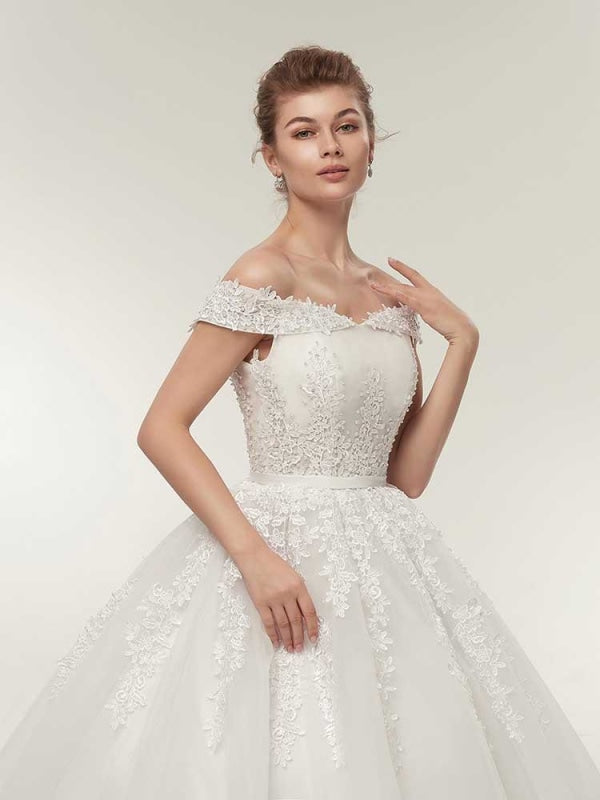 Lace-Up Ball Gown Wedding Dresses with Off-the-Shoulder Design