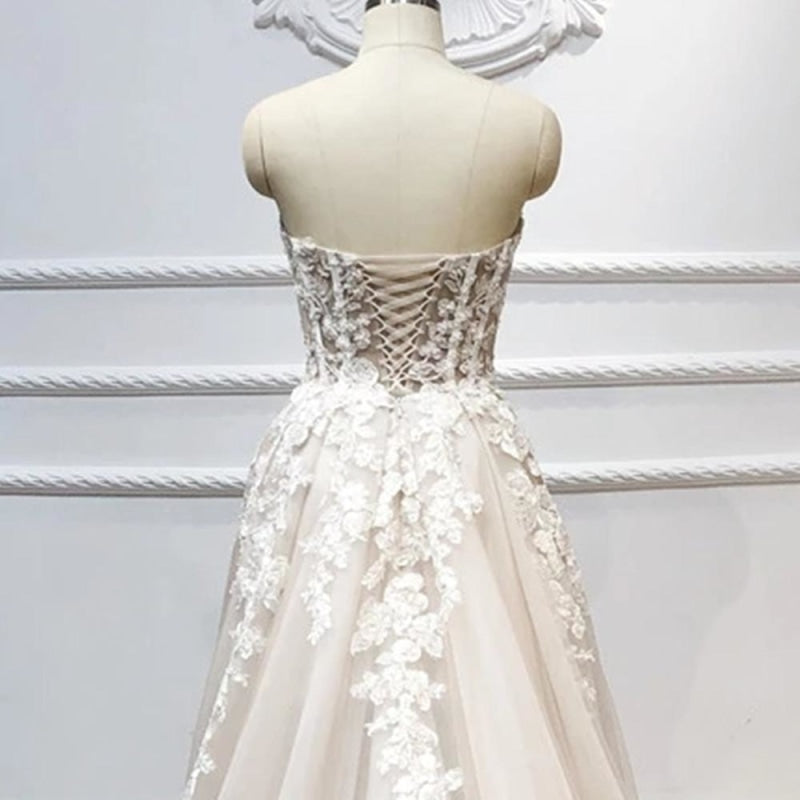 Be the first to review “Lace-up Beaded Appliques A-line Wedding Dress with Strapless Style”