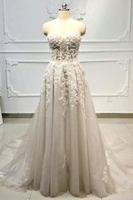 Lace-up Beaded Appliques A-line Wedding Dress with Strapless Style