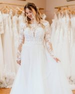 Be the first to review “Long A-Line Off-the-Shoulder Tulle Lace Wedding Dress With Sleeves Simple and Enchanting”