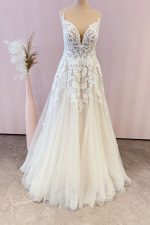 Long A-Line Spaghetti Straps Appliques Lace Tulle Wedding Dress Stunning