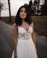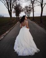 Long A-line V-neck Tulle Backless Wedding Dress Simple and Romantic
