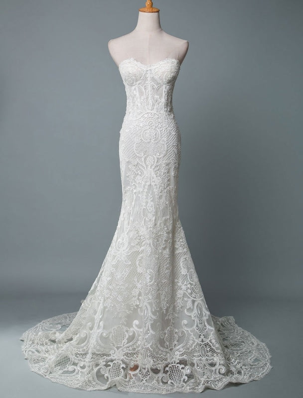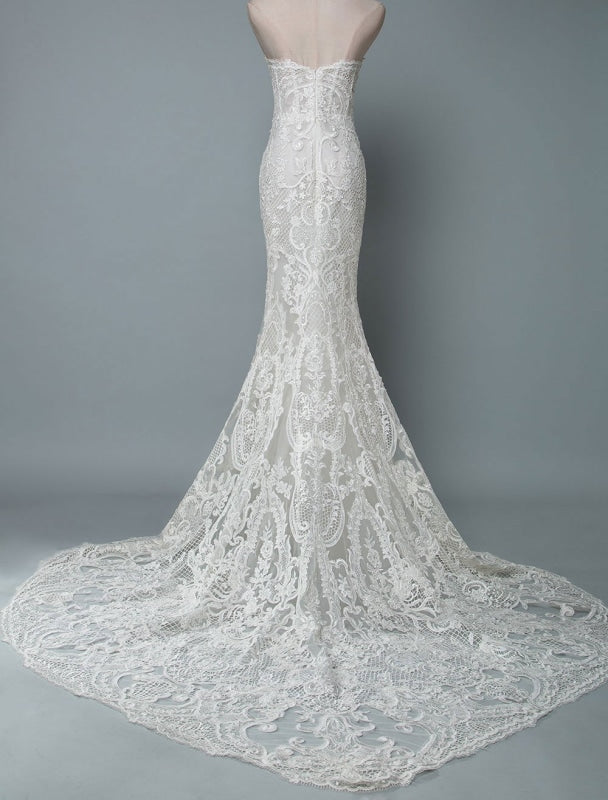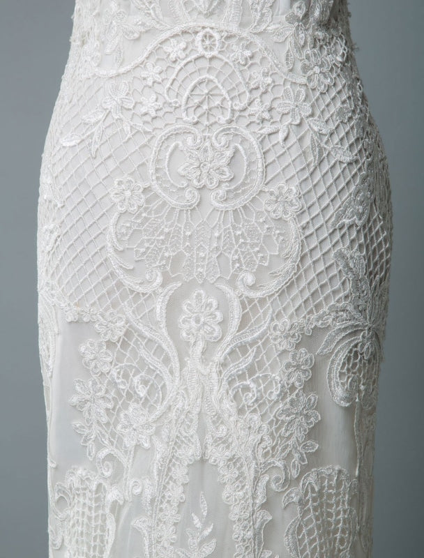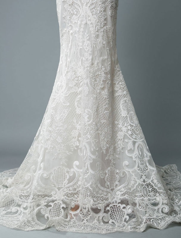 Mermaid Bridal Dresses with V Neckline and Floor Length with TrainLace Wedding Dress