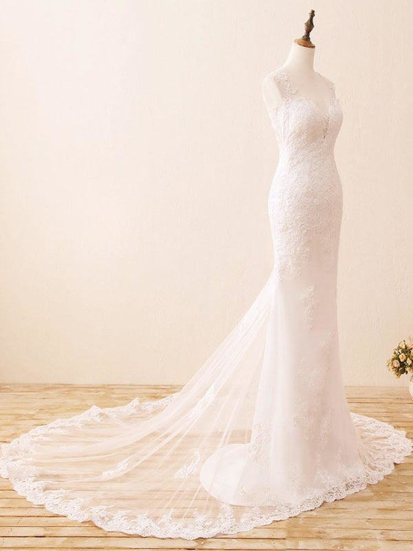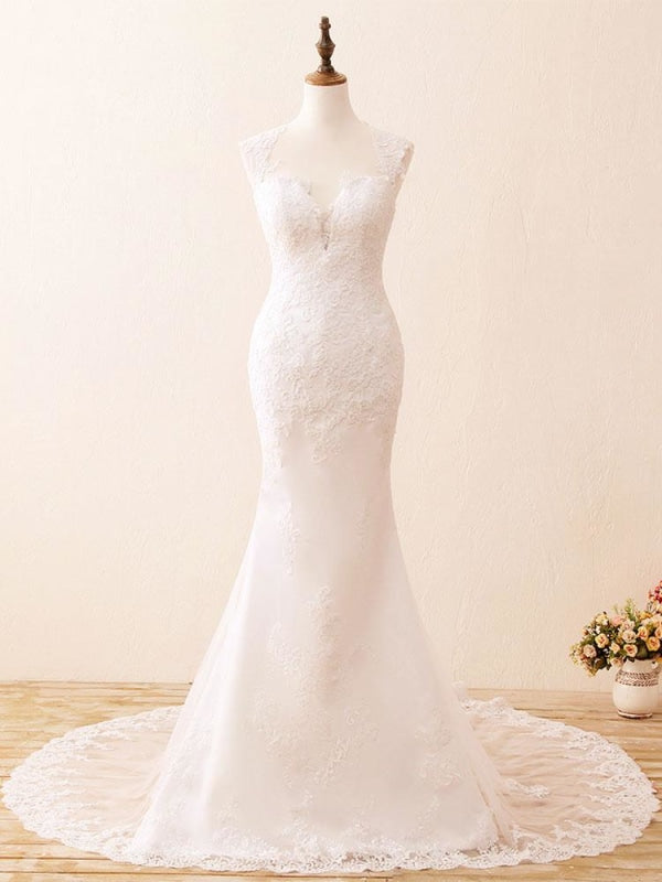 Mermaid Bridal Gowns with Queen Anne Neckline and Sleeveless Lace Design Vintage Glamour