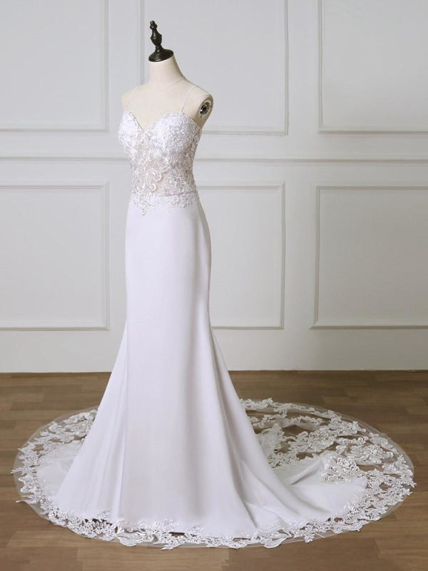 Mermaid Lace Appliques Boho Wedding Dresses with Train Sweet
