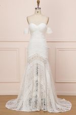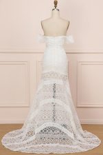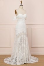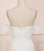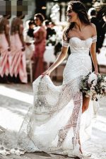 Modest V-Neck Wedding Dresses with Lace Split and Covered Buttons