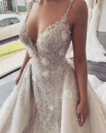 New Arrival: Modern V-Neck Sleeveless Lace Overskirt Bridal Gowns for Wedding