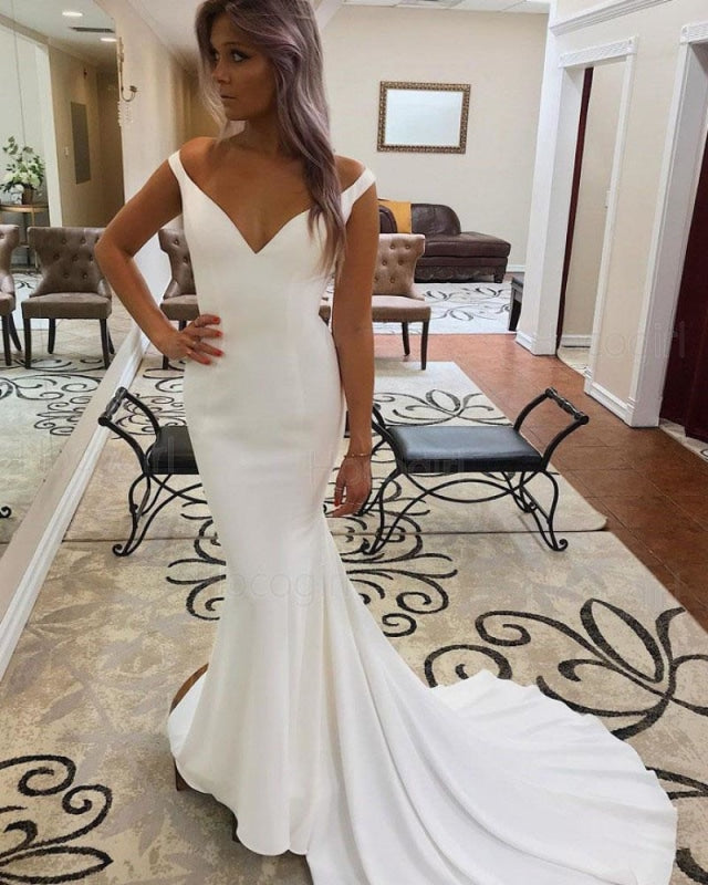 Off the Shoulder Beach Elegant Long Wedding Dress Simple and Ethereal