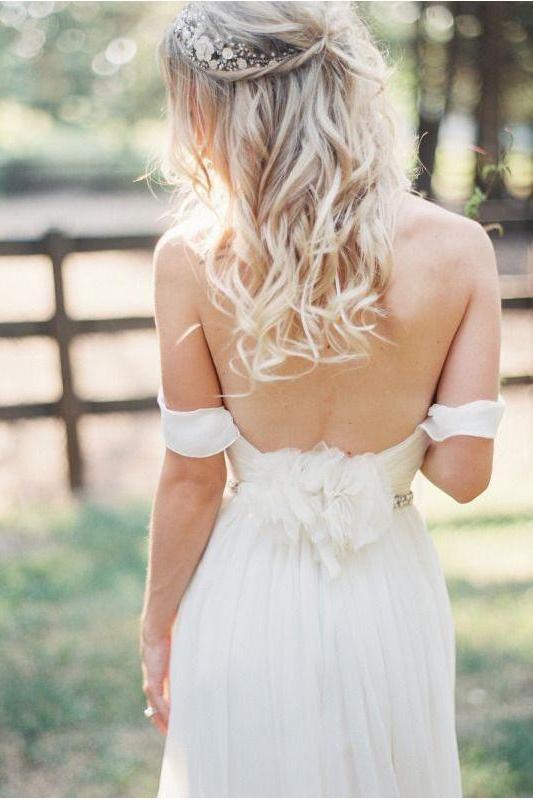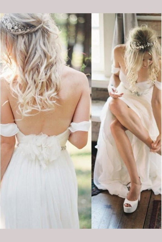 Off the Shoulder Beach Wedding Dress with Beading Waist Simple and Beautiful