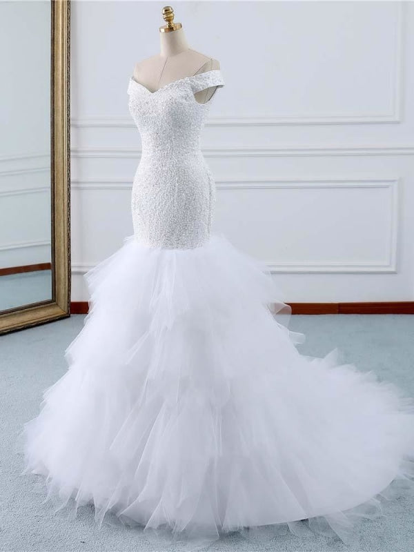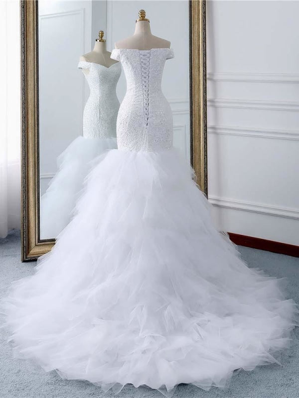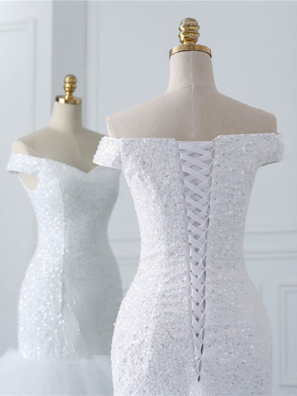 Off-the-Shoulder Mermaid Wedding Dress with Elegant Design