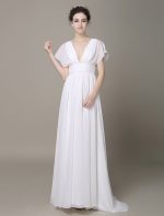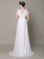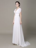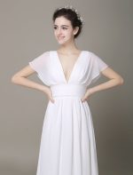 Be the first to review “Plunging Chiffon Beach Wedding Dress with A-Line Silhouette Ivory V-Neck Pleated Belt and Short Sleeves”