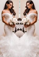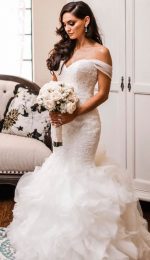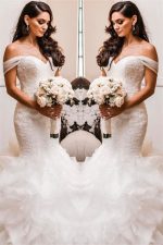 Princess Lace Wedding Dress with Illusion Neckline designed in Off The Shoulder Fashion